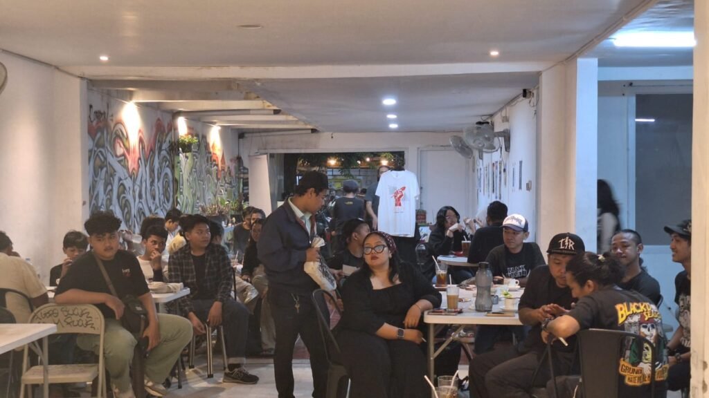 Asap rokok menggantung rendah, bercampur dengan aroma kopi yang belum habis diseruput. Suara kursi diseret, gelas beradu, tawa pendek yang cepat tenggelam oleh percakapan serius. Di antara semua itu, satu kegelisahan beredar dari mulut ke mulut: bagaimana tetap menjadi manusia di dunia yang makin lihai merapikan ketidakadilan agar tampak wajar.